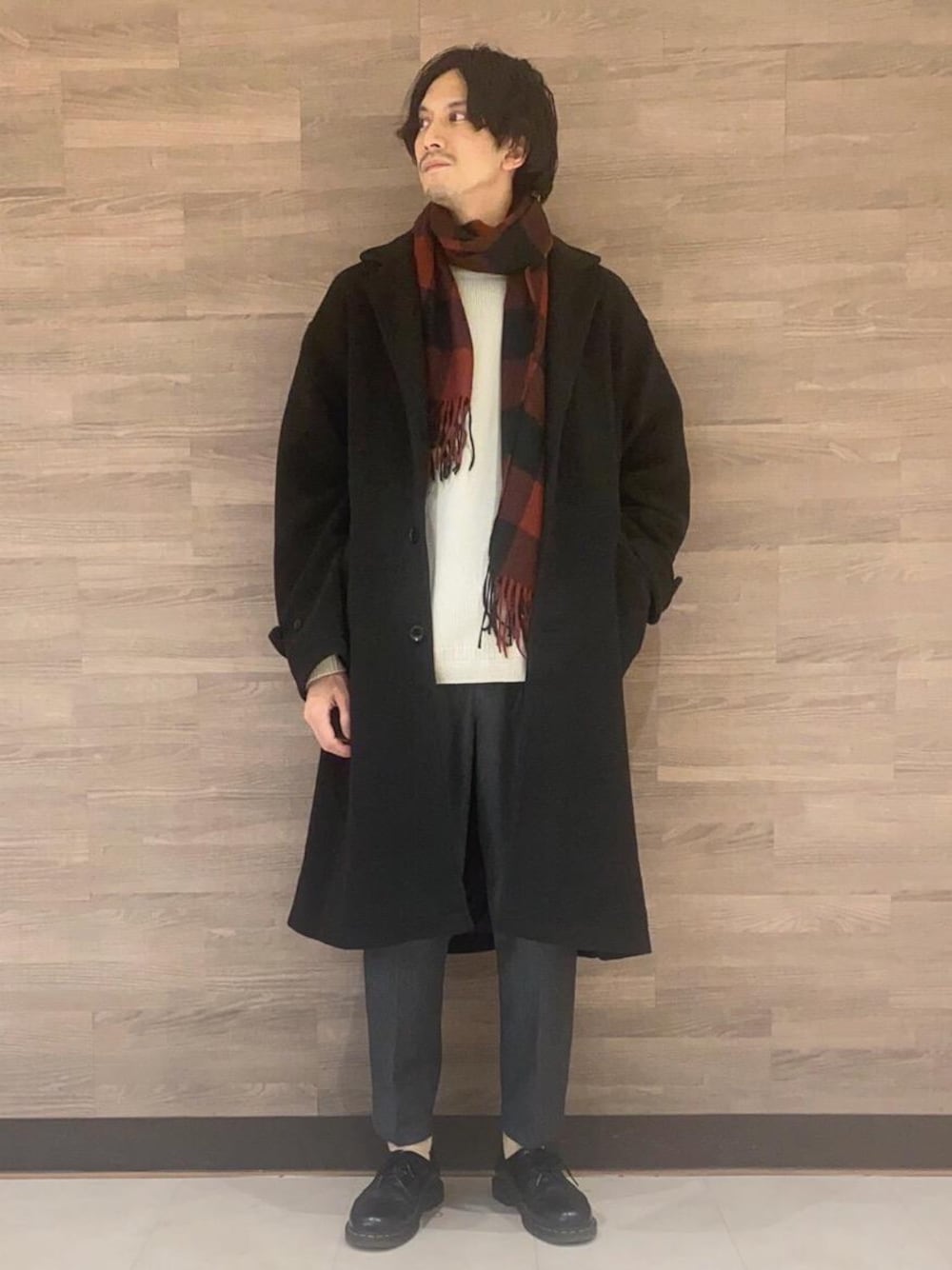 チェスターコートを使用した綺麗目コーデです!ゆったりとしたシルエットのコートですのでパンツはスッキリ目の物にしました!! 商品名:ビッグシルエットチェスターコート サイズ感:178cm痩せ型でLサイズを着用しています!ゆったりとしたチェスターコートなのでサイズ下げて着用するのも良いかと思います! 素材感:ウールの様な圧縮生地