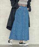 coen ゆんさむのスカート「■プレミアムデニムコレクション■バックフレアロングデニムスカート」を使ったコーディネート