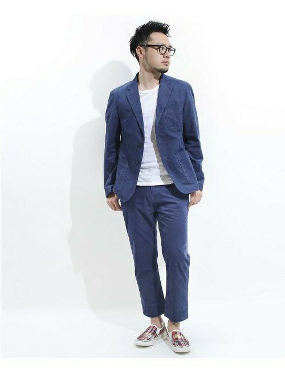 特殊な加工を施したエアリーコーデュロイ素材のセットアップをメインにコーディネート。 リネン混のため清涼感も◎ シンプルなセットアップにはマドラスチェックのスリッポンでアクセントをプラス。