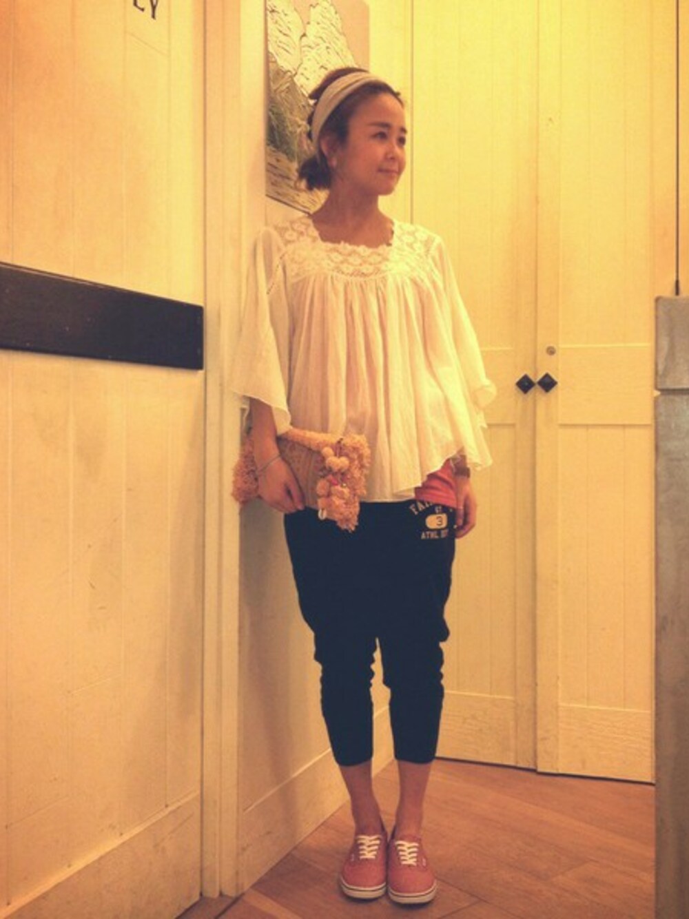 こちらのチュニックは、衿ぐりがスクエアになっておりますので 首元がスッキリ見えてお気に入りです☆ スウェットパンツも、股上が深くサルエル調のお作りで 楽チンカワイイアイテムです☆ フェミニンなトップスでもこちらのパンツを合わせる事で 甘くなりすぎない所がポイントです☆