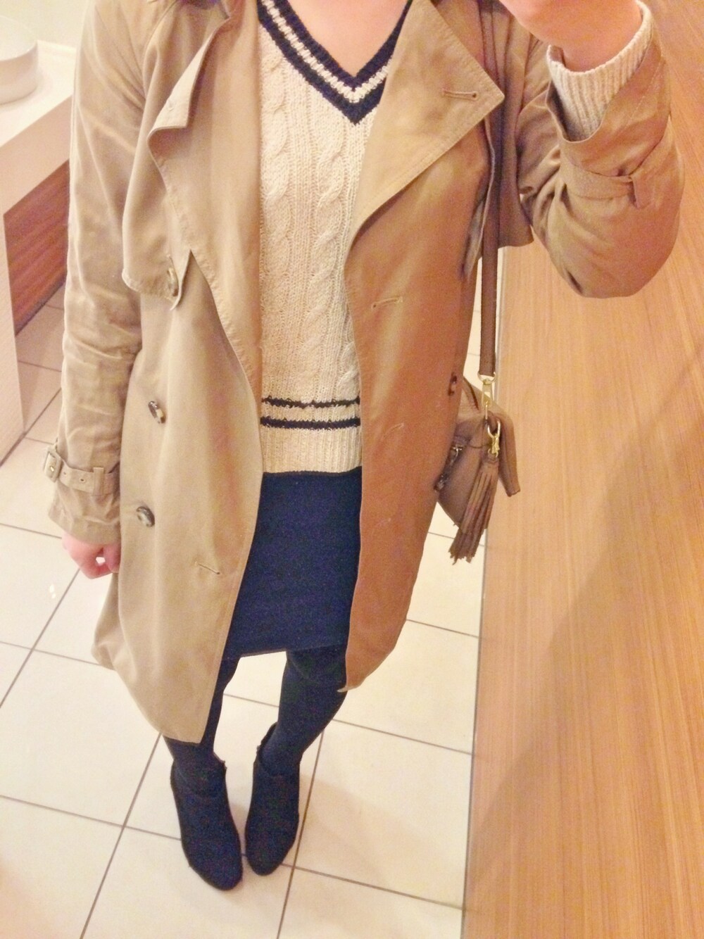 コート:moussy ニット:apart by lowrys スカート:Dholic 靴:ESPERANZA 鞄:Beaure