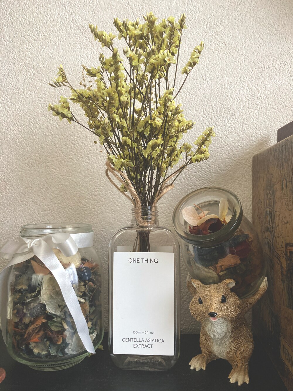 ONE THING のその後。ボトルがかわいくて捨てるのがもったいなかった。 ニキビに良いと聞いたので購入しました。韓国のコスメ使いだしてから肌のコンディションはよくなった。自然素材がそのまま使われてる化粧水です。今も使ってます。