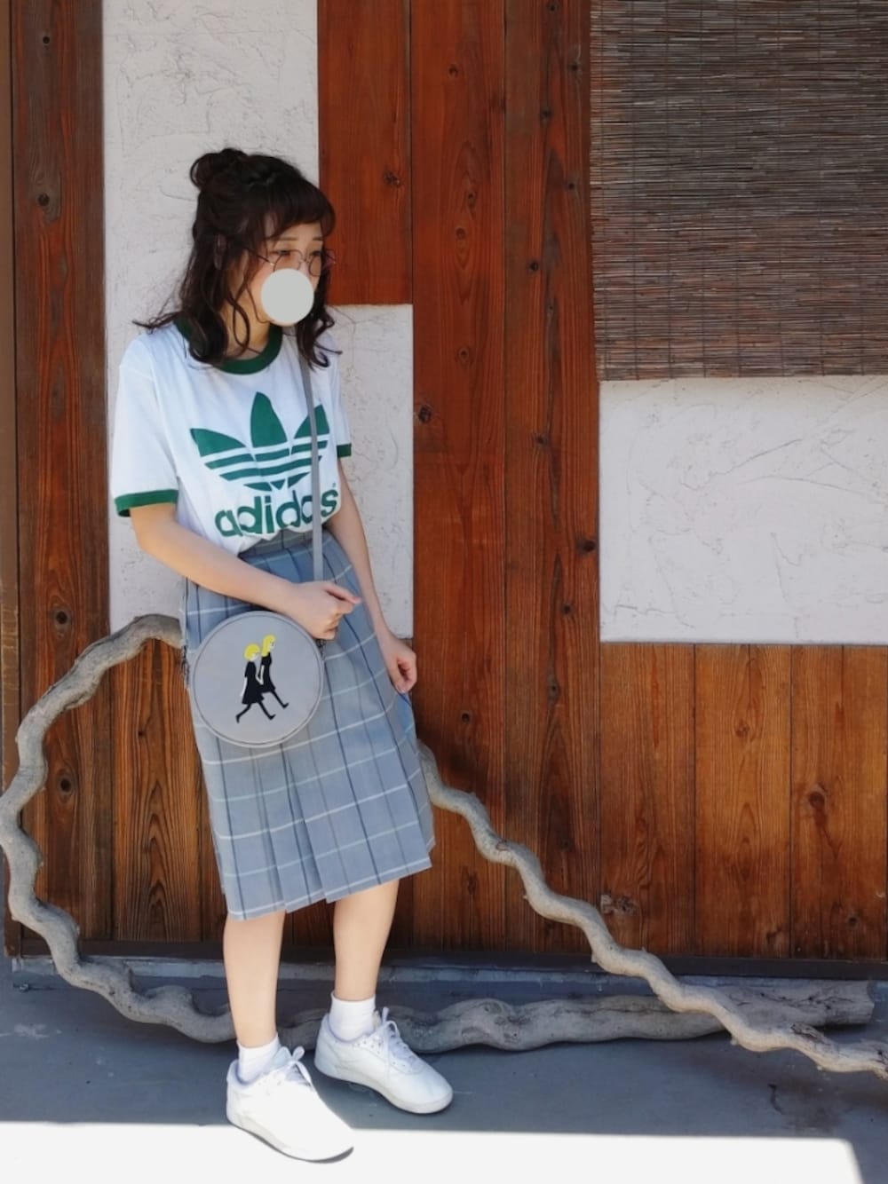 古着スポーツみっくす。 わくわくする楽しさが感じられる系のガーリーアイテム! トップスとスカート、スニーカーは古着。 ポシェットは韓国の若手デザイナーさんのもの。 お洒落なカラーレンズでenjoyしてる感 笑 きなりのレースの日傘が絶妙に女の子っぽくて合う。 木の柄、深い緑のタッセルがビンテージぽくて好き。