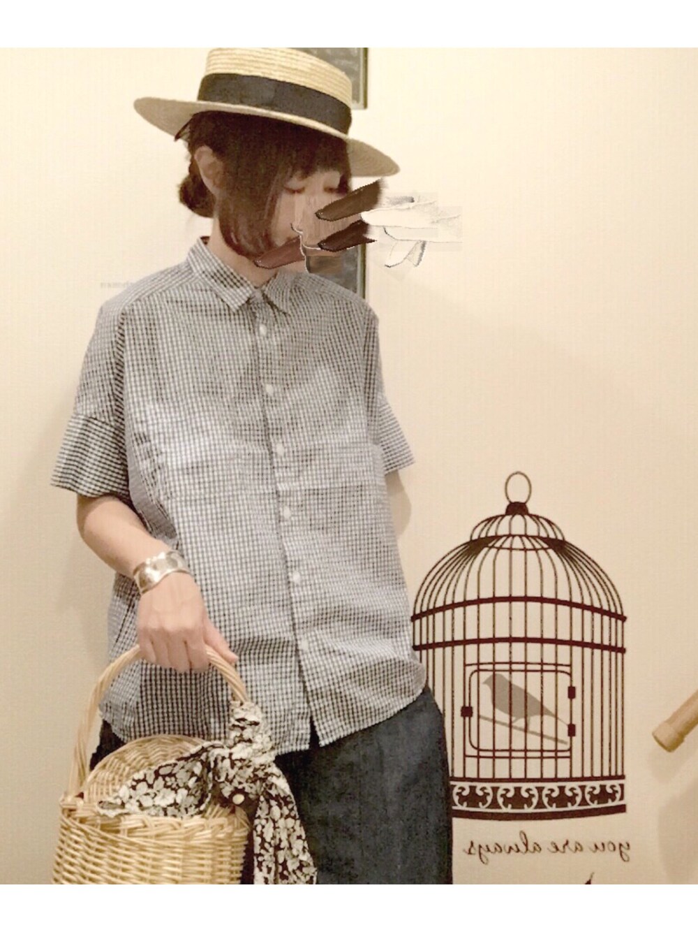 こはる。のハット「Ray BEAMS / ストローカンカン帽」を使ったコーディネート