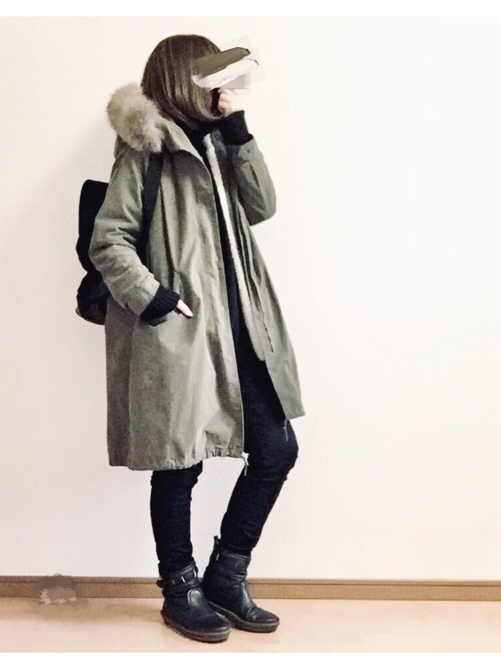 こはる。のモッズコート「オックスピーチウラWAXコーティング モッズコート_#」を使ったコーディネート