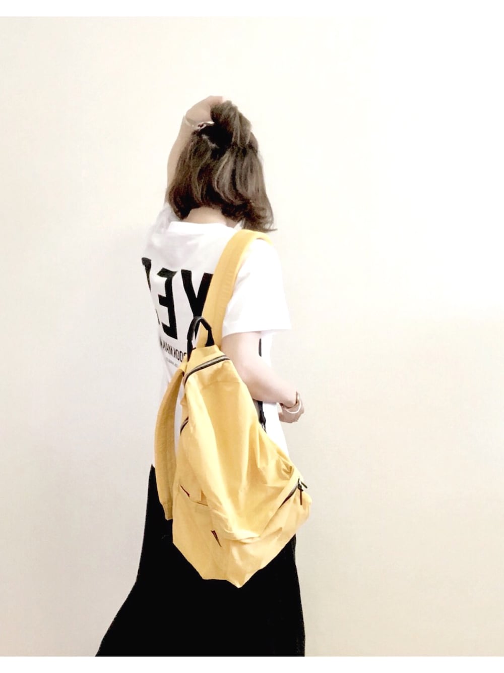 YesTシャツの着心地の良さたるや。 暑すぎて雑なハーフアップ。 お気に入りのデカクリップのため小窓🙆♀️