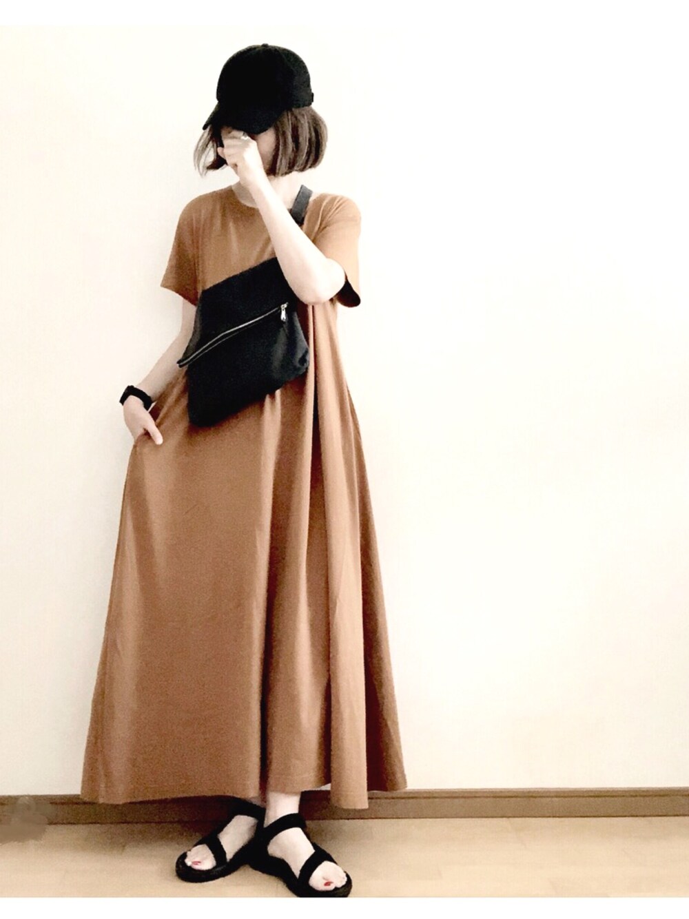 イーザッカマニアさんのマキシワンピ。 ポケ付きのー 汗じみがでない素材のー プチプラー 送料無料だたのでお試してキャメルを🙆♀️