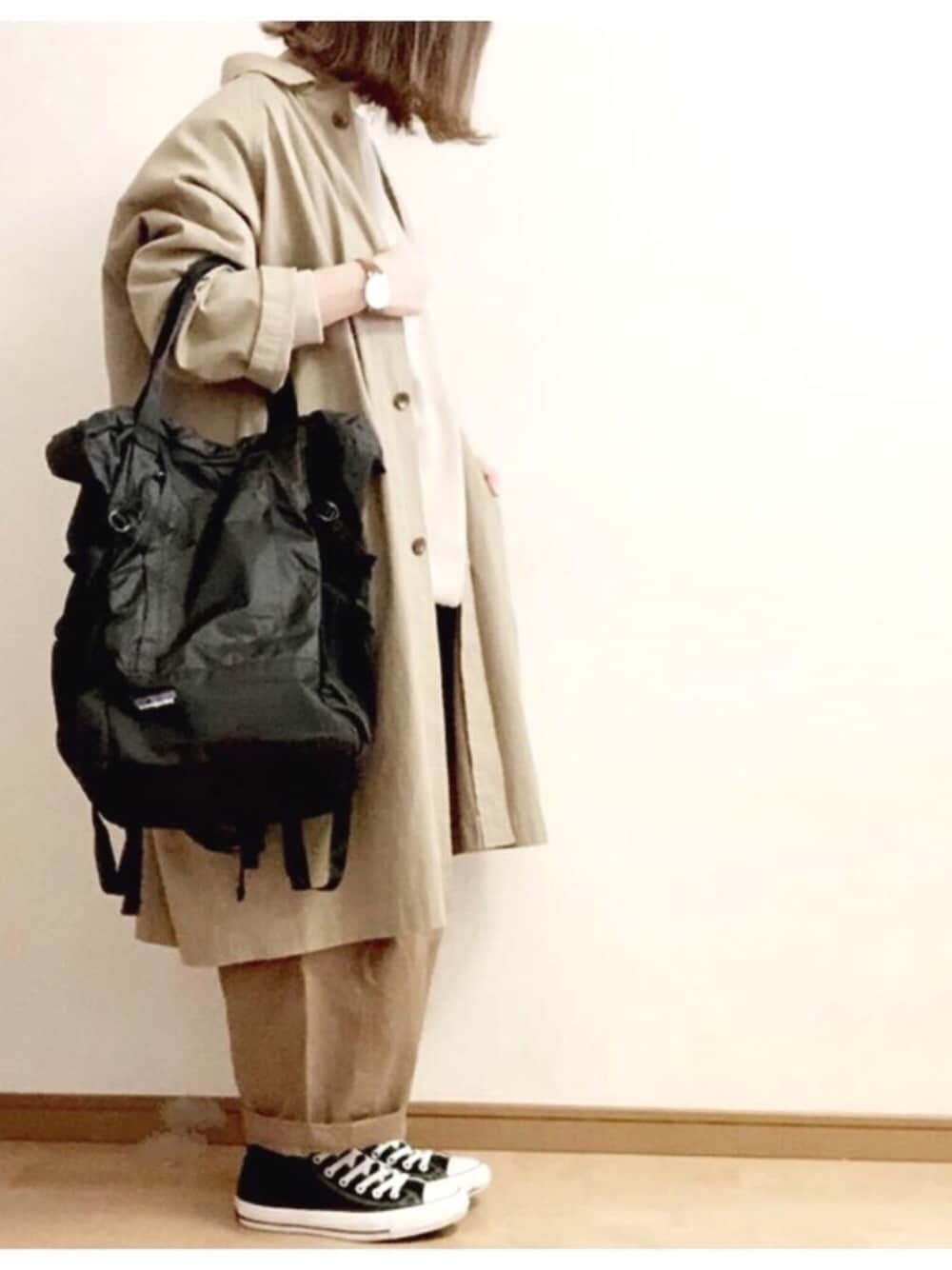 こはる。のステンカラーコート「30/2タッサークロス BIGコート_#」を使ったコーディネート