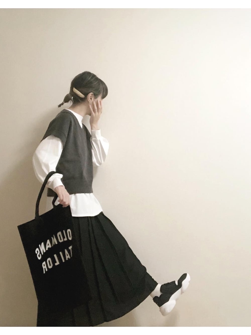 こはる。のニット/セーター「カットロンT×ダメージニットベストセット」を使ったコーディネート