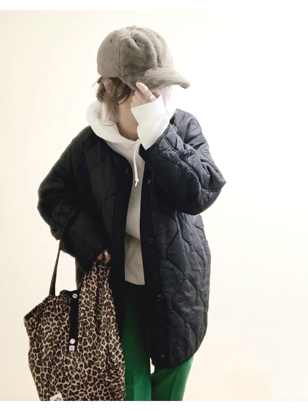イチヨンプラスのフェイクファーキャップ💗 とぅるとぅるふわふわのファーキャップなんだけど6パネルになってるからスッキリ被れるー🙆♀️ NOSTALGIAのセミフレアカラーパンツは伸縮してめちゃ履きやすくて足が長く見える気がする🌟