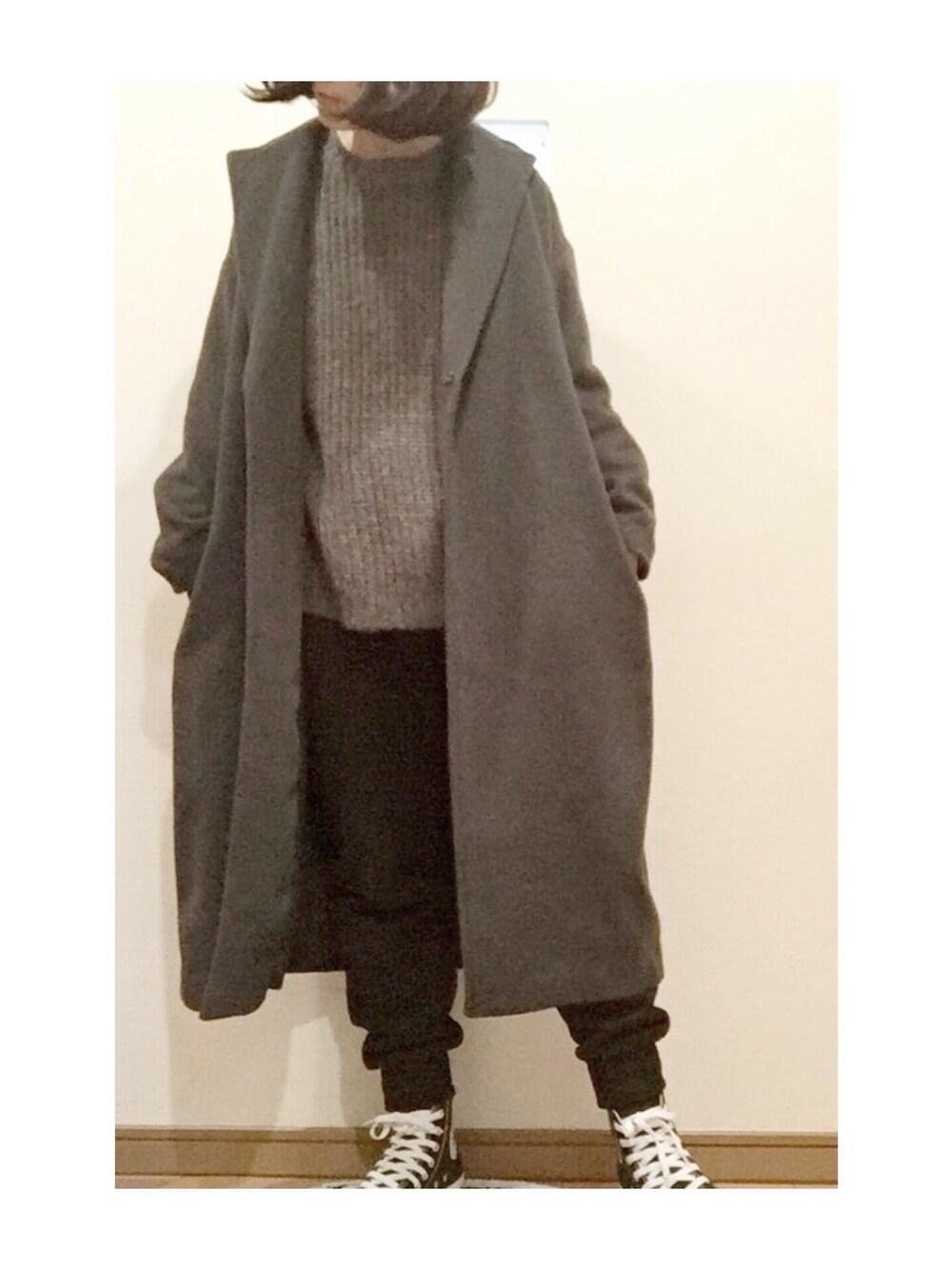 ラフなカッコにもフォーマルなカッコにも合うばっさーんコート。 後ろの飾りベルトがたまらん❤︎ ↑見えてないし