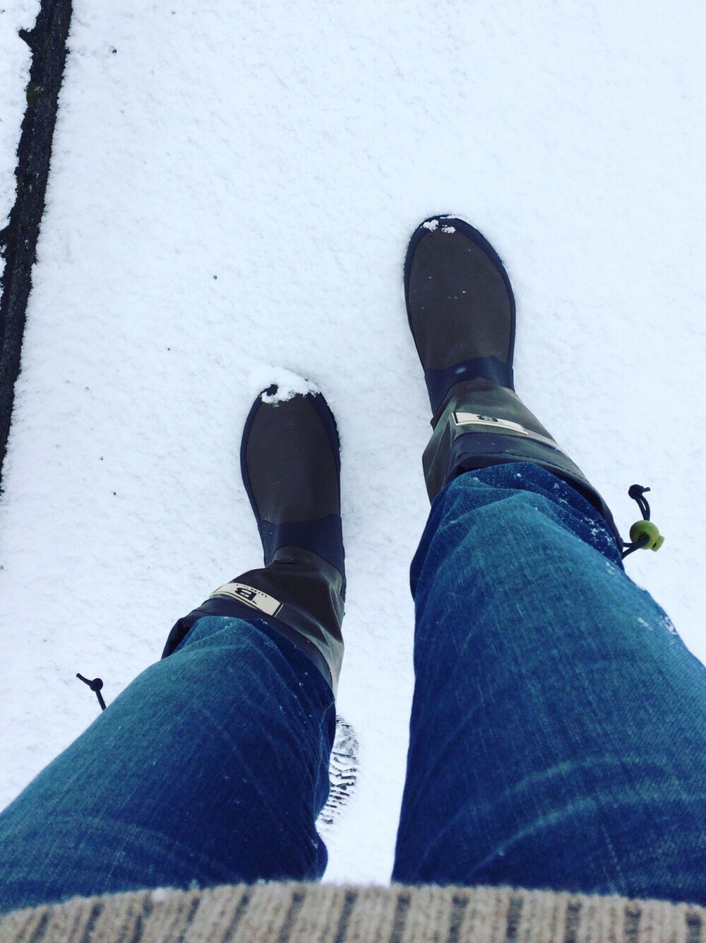 中々雪が積もることがない地域だから、このくらいの雪でもテンション↑↑ ♪ やっと【日本野鳥の会】の長靴の出番だい!