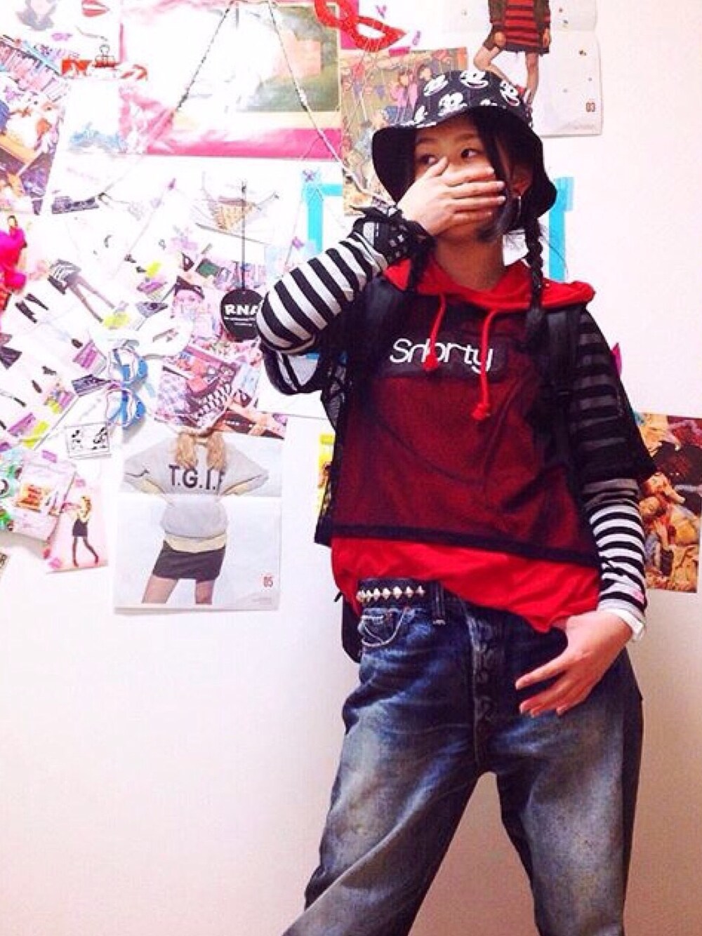 ボーダーの長袖トップスに 赤のノースリーブパーカー、 メッシュのフットボールTの レイヤードスタイルです!! 参考になれば幸いです!