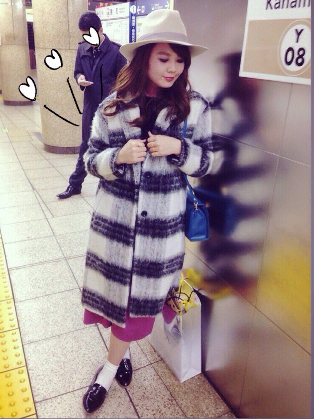 パンツ:Lily Brown バック:Lily Brown ニット:GU ハット:マーキュリーデュオ アウター:Avan Lily リング:TOP SHOP,JILLSTUART