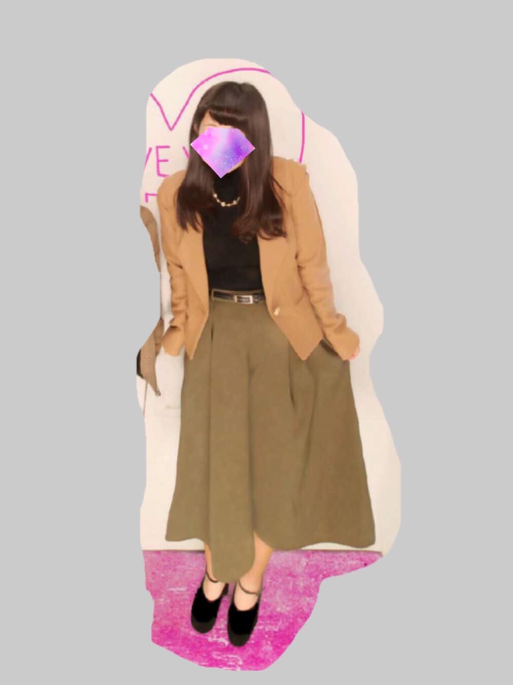 ノーカラージャケット 黒ハイネック カーキガウチョ