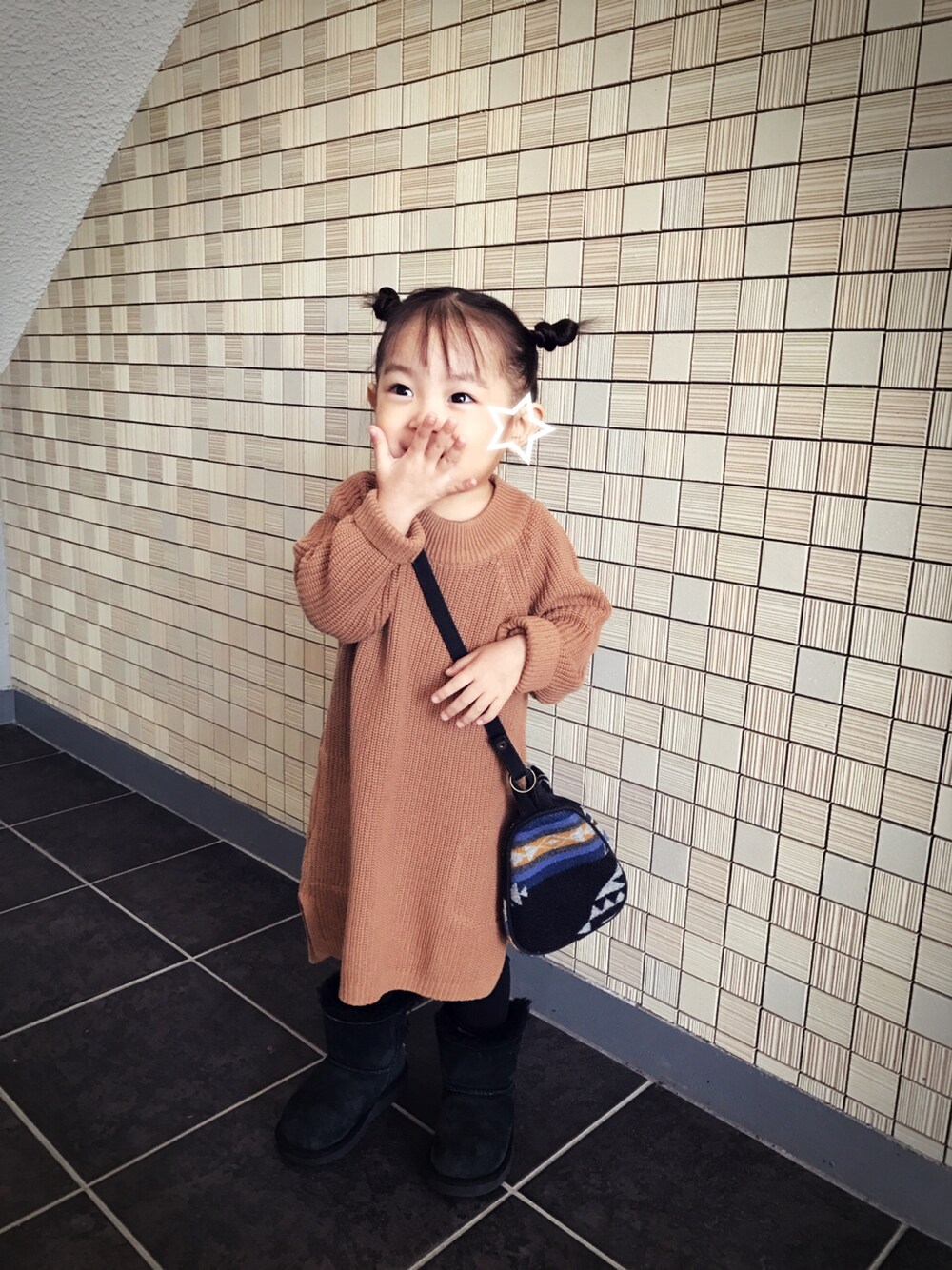 今日のコーディネート☆ 茶系の服初購入してみました(*´-`) チクチクも無く着心地良いみたいです。 丈も長めで来年も又着れそうです☆ 個人的に茶系を着ないのですが子供には色んな色を着せてみようと思った日でした☆