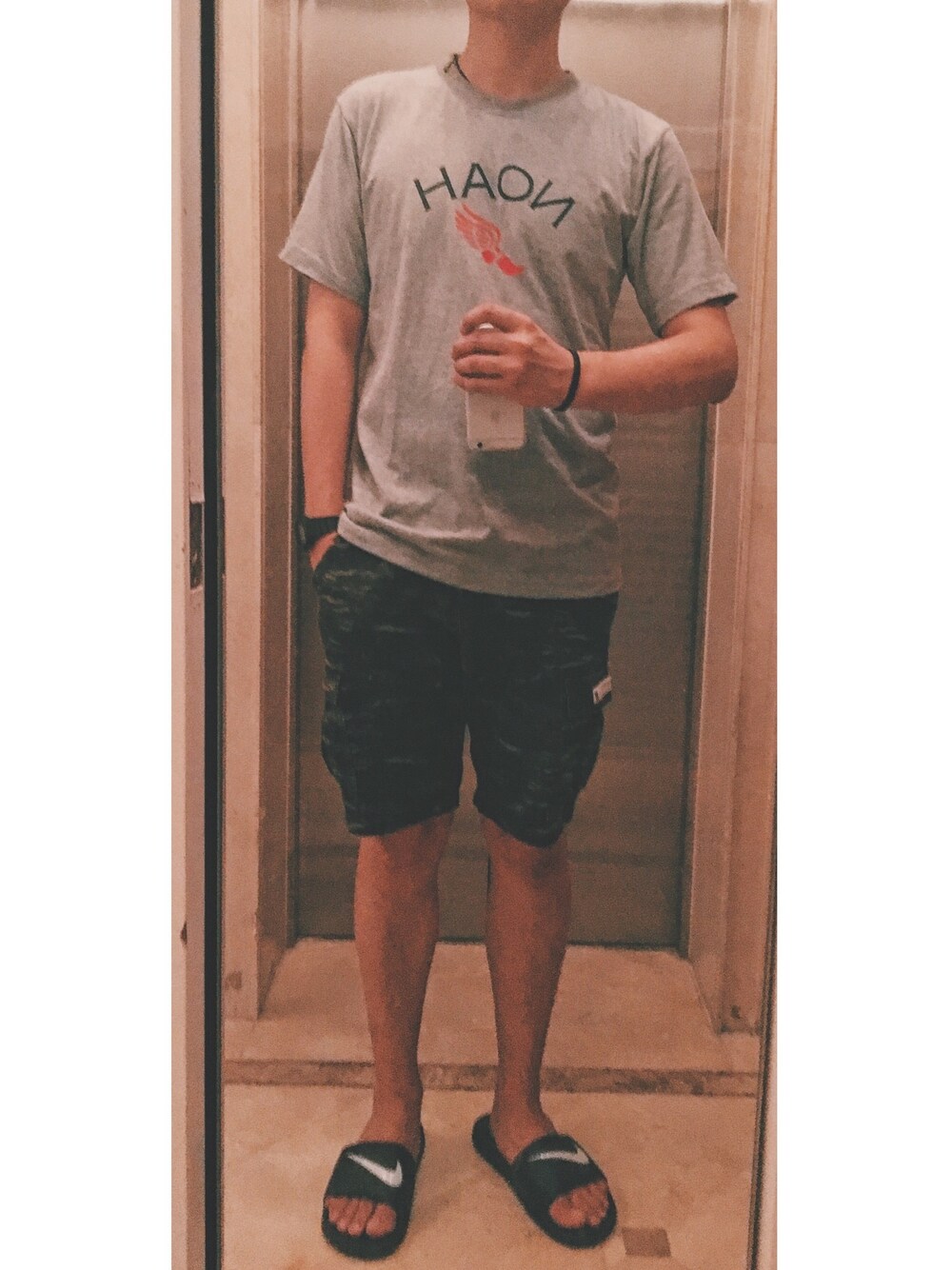 Day 5 Noah灰色t+wtaps迷彩短裤+nike澡堂拖。街头工装风?你们来定义
