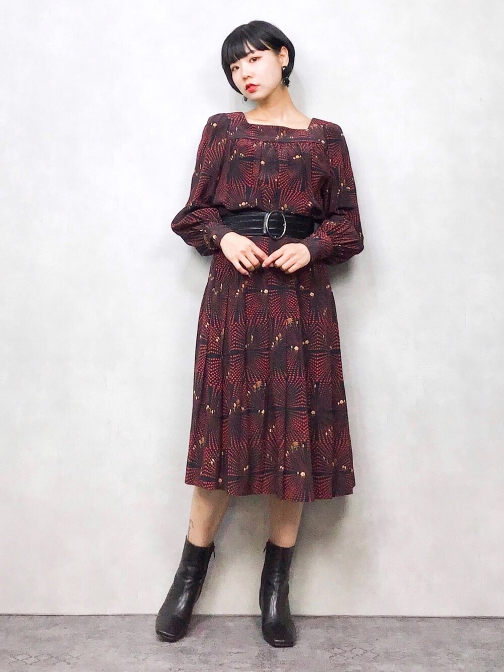 fireworks setup dress 黒地に花柄と赤の個性的な柄が特徴的なセットアップドレス◎ 胸と袖部分にはギャザーが入っており、スクエアネックが女性らしさを引き立ててくれます! 在庫一点のみ COLLENTE (インポート古着を中心とした国内古着やvintage商品のセレクトショップ【COLLNTE】にて販売) SHOP HP▷下記所属ショップ 又は プロフィールからも飛べます。