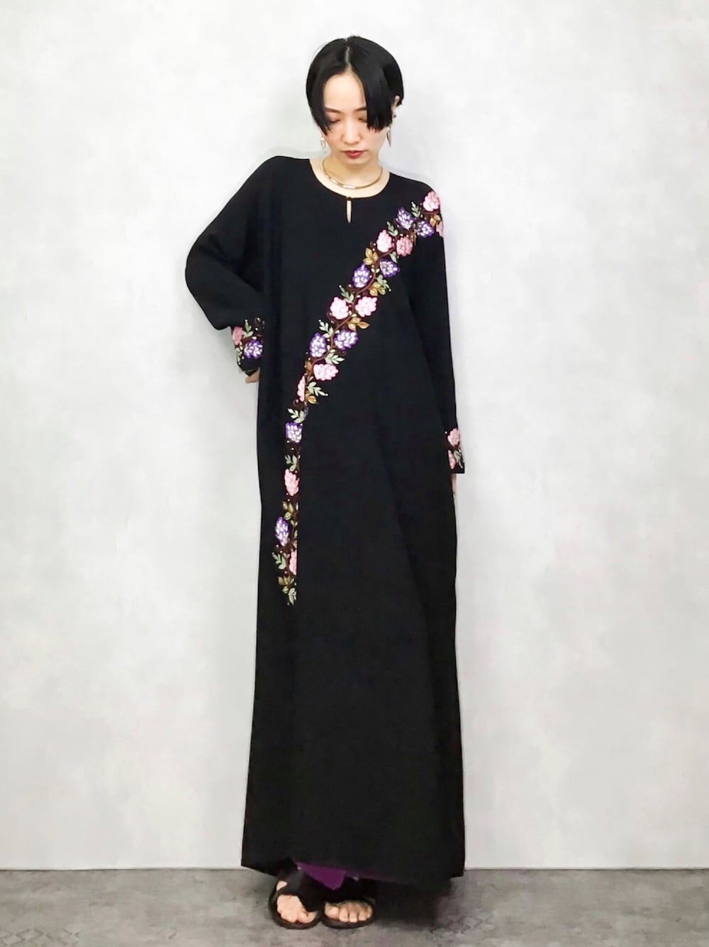 COLLENTEのワンピース「BLACK floral embroidery long dress-1090-4」を使ったコーディネート