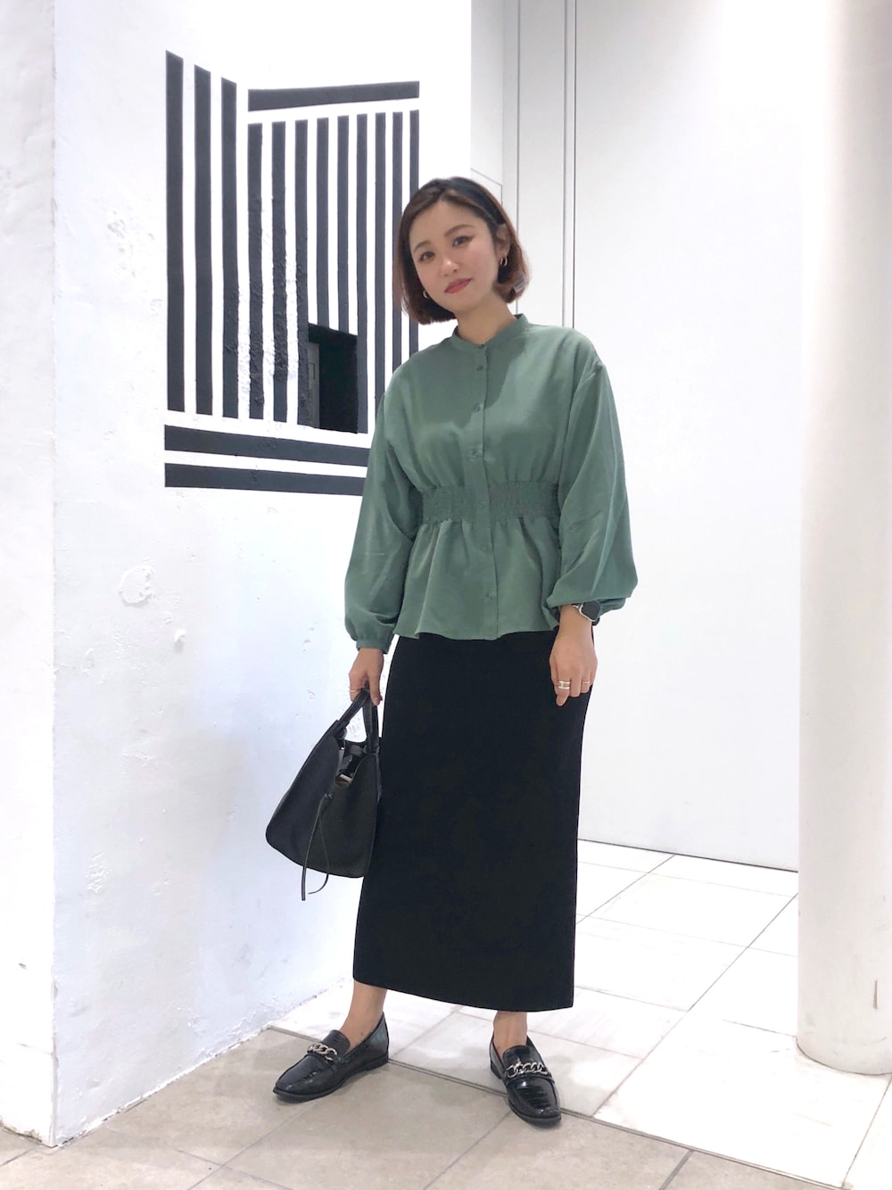 店舗で大好評❣️ マットなサテン生地ブラウスは ウェストシャーリングがシルエットを綺麗に見せてくれます☺︎