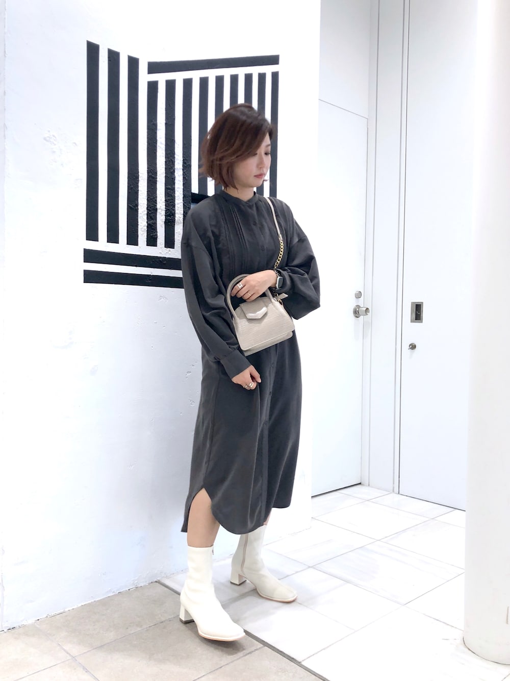 光沢感を抑えた高見えするサテン生地の シャツワンピース☺︎ とろみのある素材って体を華奢に見せてくれるのでおすすめです!!