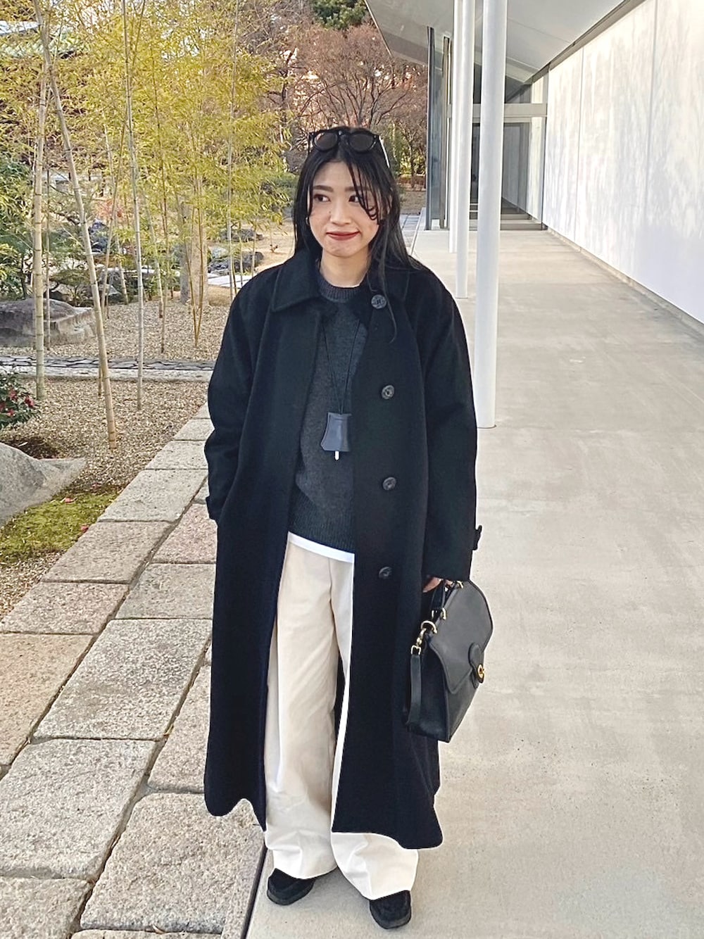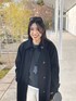 📢 Instagram :@___zu00_ 冬もしっかりモノトーン。🛸🤍 あったかいニット、触り心地も抜群◎ 髪暗くしたから ブラウンめな赤リップに。🤎