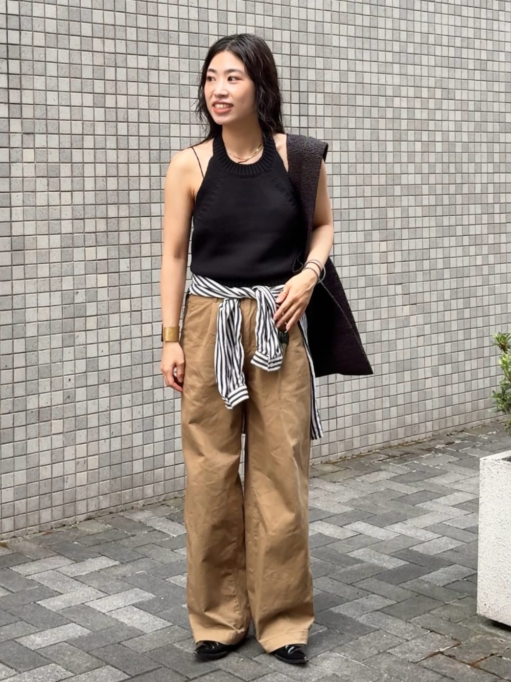 misuzuのチノパンツ「婦人 ムラ糸 チノタックワイドパンツ 股下長め」を使ったコーディネート