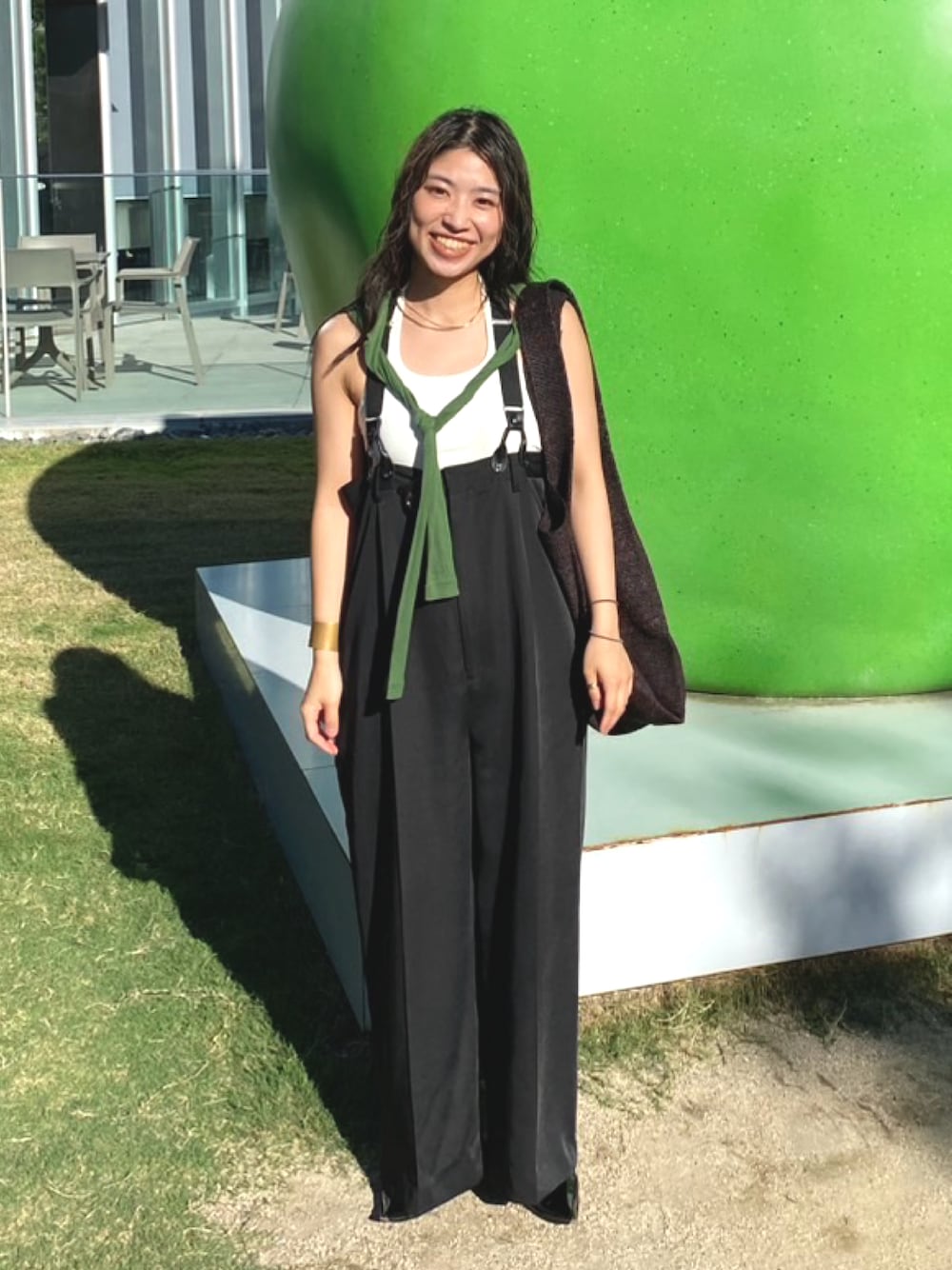 【 Instagram :@___zu00_ 】 ランチにはちょっと綺麗めなall in oneで🍈 差し色&温度調整が出来る、 トップス肩掛けstyle♩ ユニクロのsaleで買ったホルターネック、 肩周りもすっきりに見えておすすめ🙆🏼🤎
