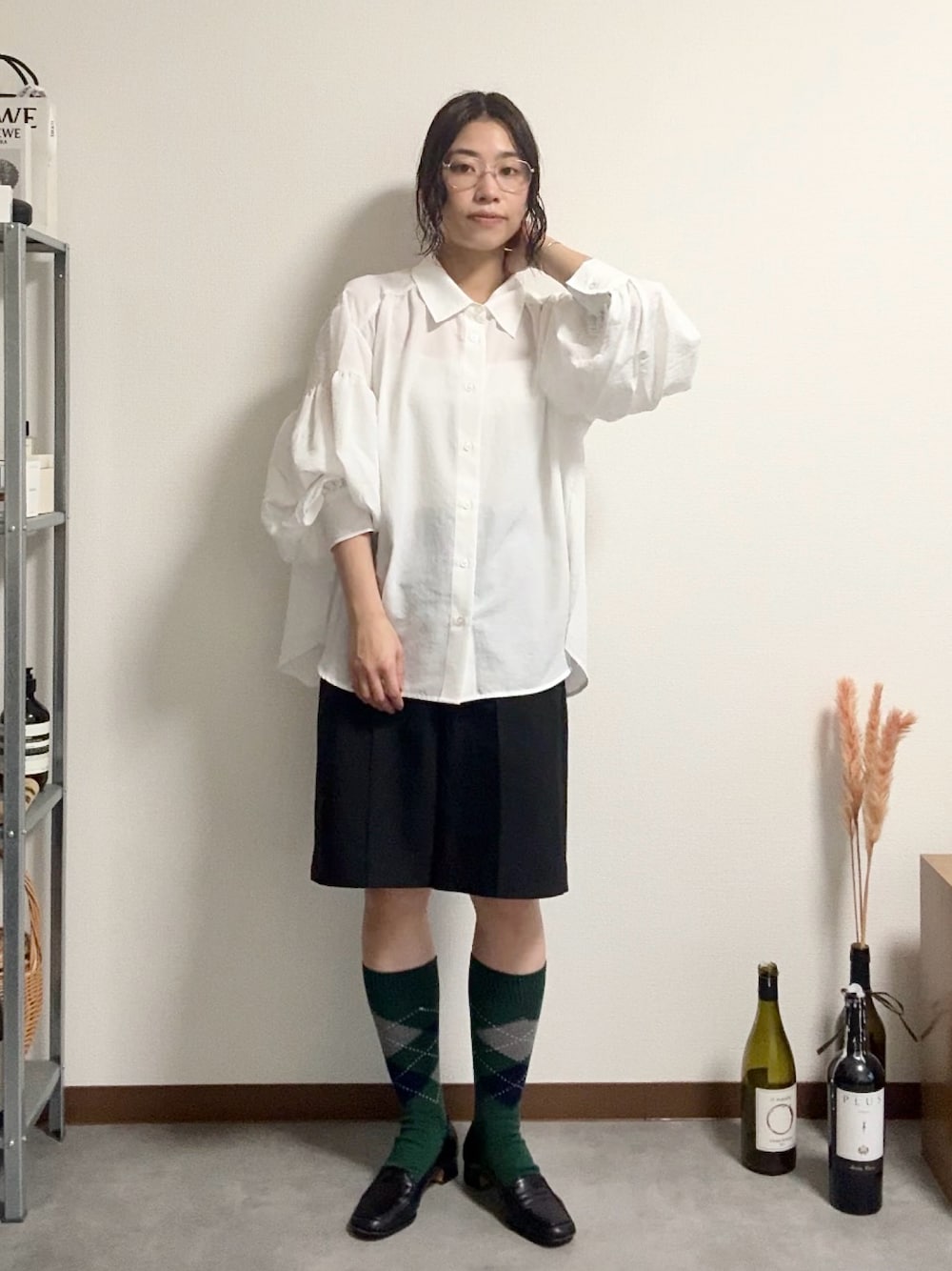【 Instagram :@___zu00_ 】 袖にボリュームのある、 シアー素材が春っぽいシンプルなブラウス◎ 冷房&紫外線対策にもぴったり有り難い~ シンプルなstylingが気分っ🌸 ソックスで遊び心を、、♩