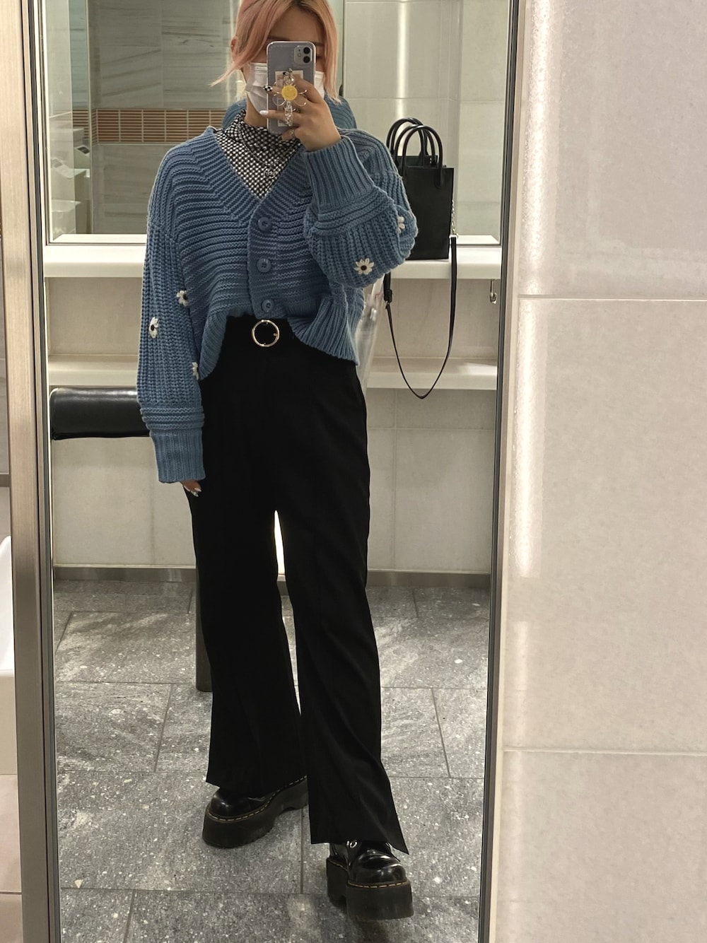 大雨すぎて裾から水絞れそうだった🍬 カーディガン買ってから初めて着れたけど水色可愛い💙💙💙