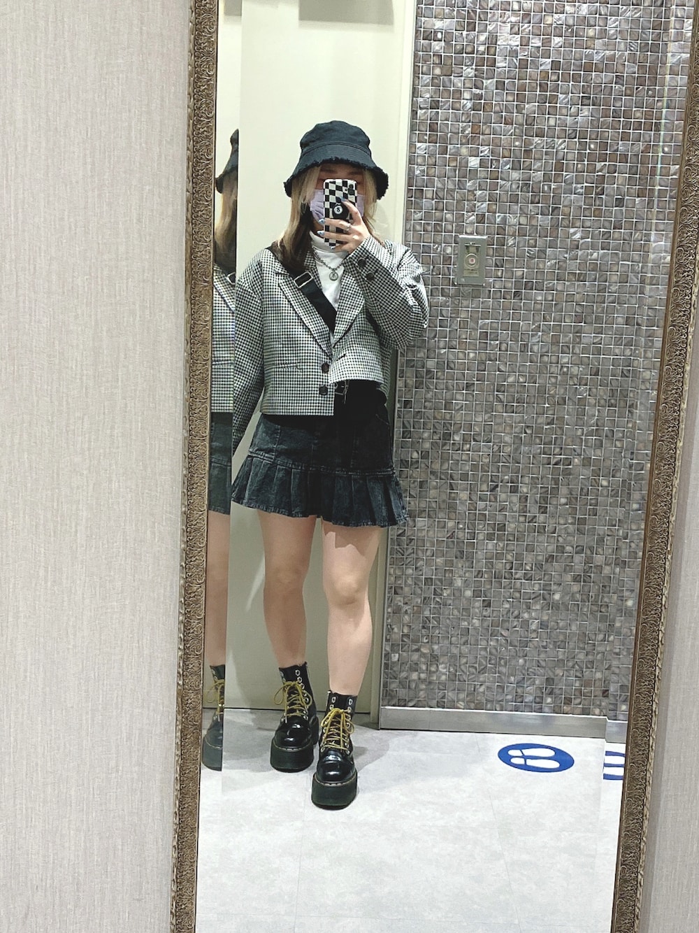韓国ぽい着方してみたかったやつ!!! ジャケット可愛い〜 スカートお気に入りすぎるな🤭