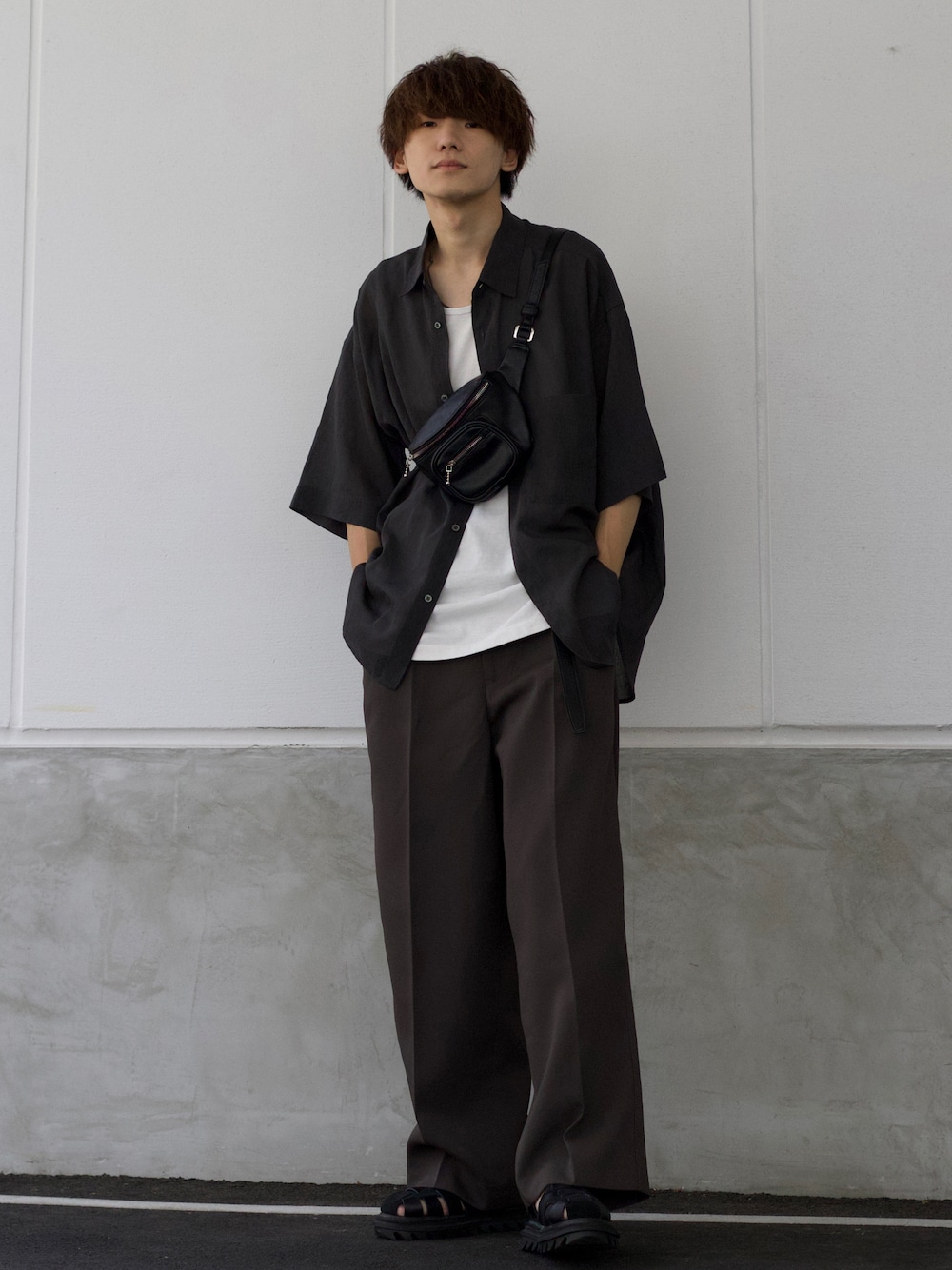 ダークトーンのシアーシャツとブラウンのスラックスのきれいめカジュアルコーデ モノトーン+1色の落ち着きのある王道コーデ! ボディバッグとグルカサンダルでカジュアル感を少しプラスすることで、きれいめ過ぎないシンプルコーデ 閲覧頂きありがとうございます。 ▼是非こちらもフォローをお願いします▼ WEAR···▸ @coltwear Instagram···▸ @col_ptpr アイテムの使用感やサイズ感など 質問あれば気軽にコメントして下さい! ご要件等はInstagramのDMにお願いします。