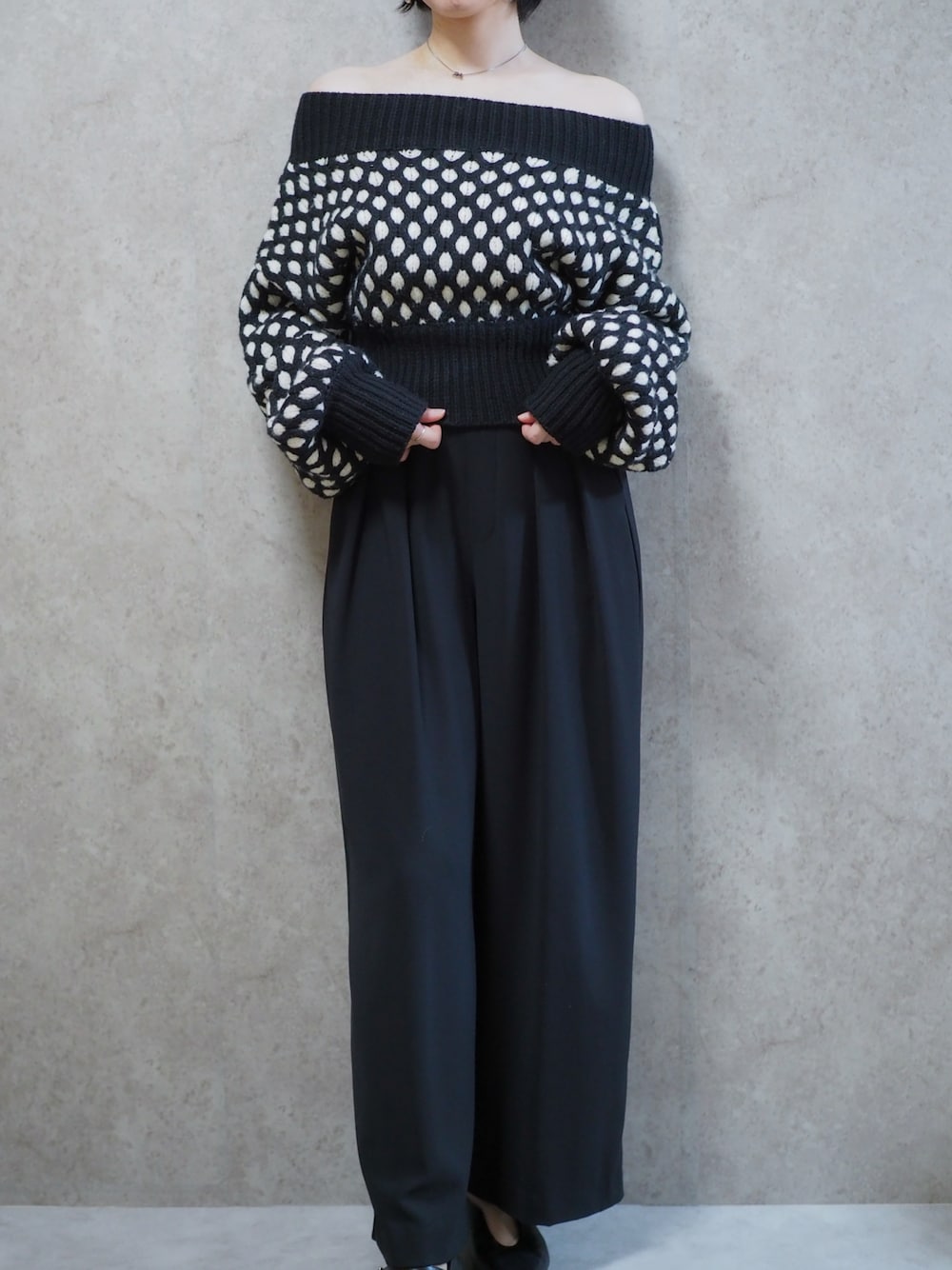 SORIN¥15,400DouDou¥14,300VIVIAN¥3,980jewel VOXこの画像から似たアイテムを検索できます74125お気に入り (4)50RiiさんへのコメントNO COMMENTコメントはスマートフォン用アプリからご利用できます着用アイテム¥15,400SORINSORINニット/セーター (ブラック系)ニット/セーターサイズ:38着用コーデ:2件探すZOZOTOWNで探す¥14,300DouDouDouDouスラックス (ブラック系)スラックスサイズ:TM着用コーデ:680件商品を見るZOZOTOWNで購入する¥3,980VIVIANVIVIANパンプス (ブラック系)パンプスサイズ:24着用コーデ:45件商品を見るZOZOTOWNで購入するjewel VOXjewel VOXカスタムナンバーネックレスネックレス (シルバー系)ネックレス探すZOZOTOWNで探すRiiのニット/セーター「Bicolor Cable Off Shoulder Sweater」を使ったコーディネートコメントを表示2026.3.5着用ブランドSORINDouDouVIVIANタグ#骨格ウェーブ#ブルベ冬#ソフトエレガント#ドット#タックワイドパンツ#オフショル#ニット#serenemoodモデル情報女性・165cm・39歳骨格ウェーブショートヘアー似ているアイテムSORIN × ニット/セーターDouDou × スラックスVIVIAN × パンプスRii@coma7762 / 165cm / WOMEN / ショートヘアー0コーディネート0フォロワー注目のコーディネートアプリでもっと見るもっと見る