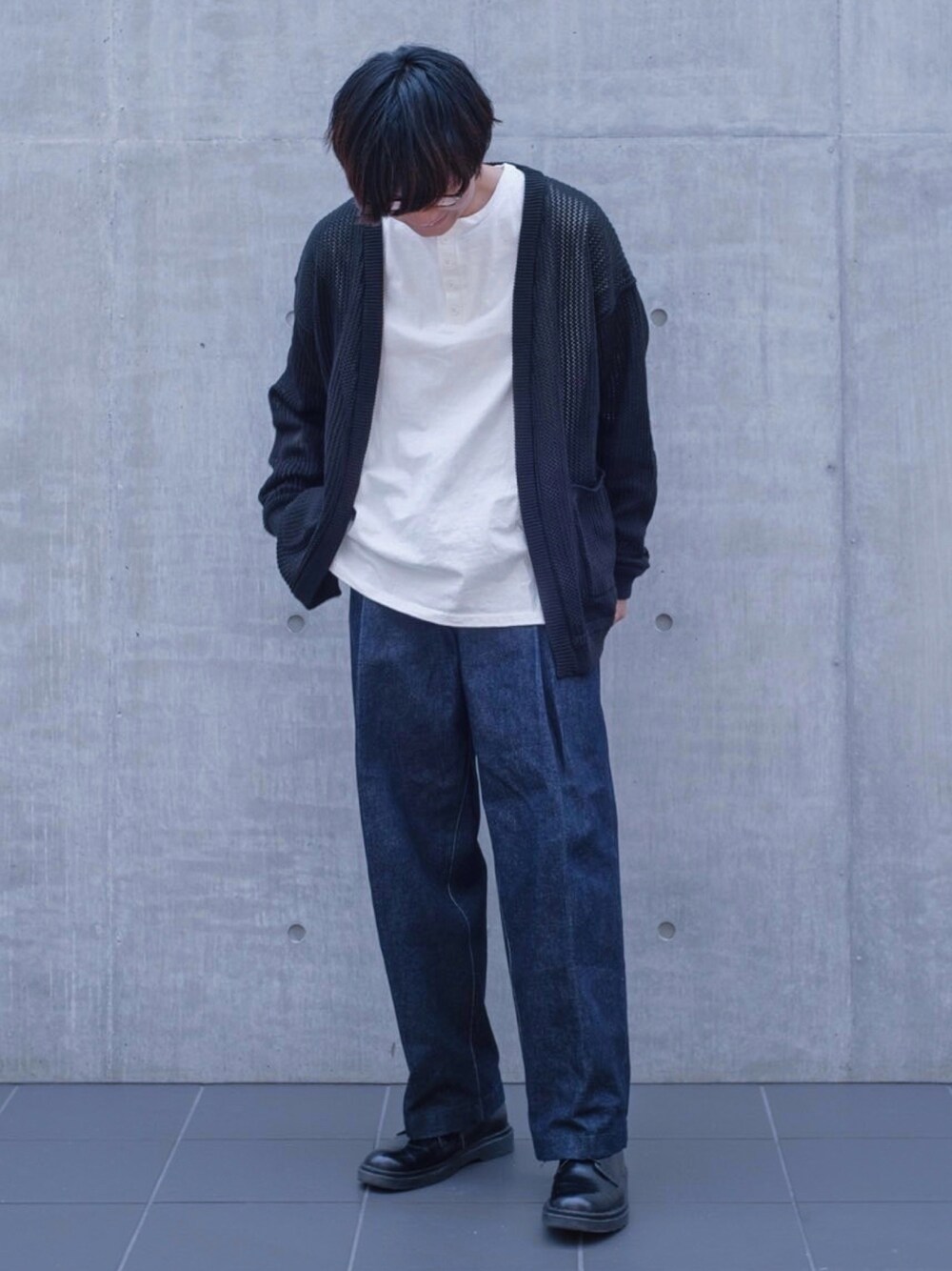 平莉川己夢(コム)のデニムパンツ「NEONSIGN WIDE DENIM SLACKS "RIGID"」を使ったコーディネート