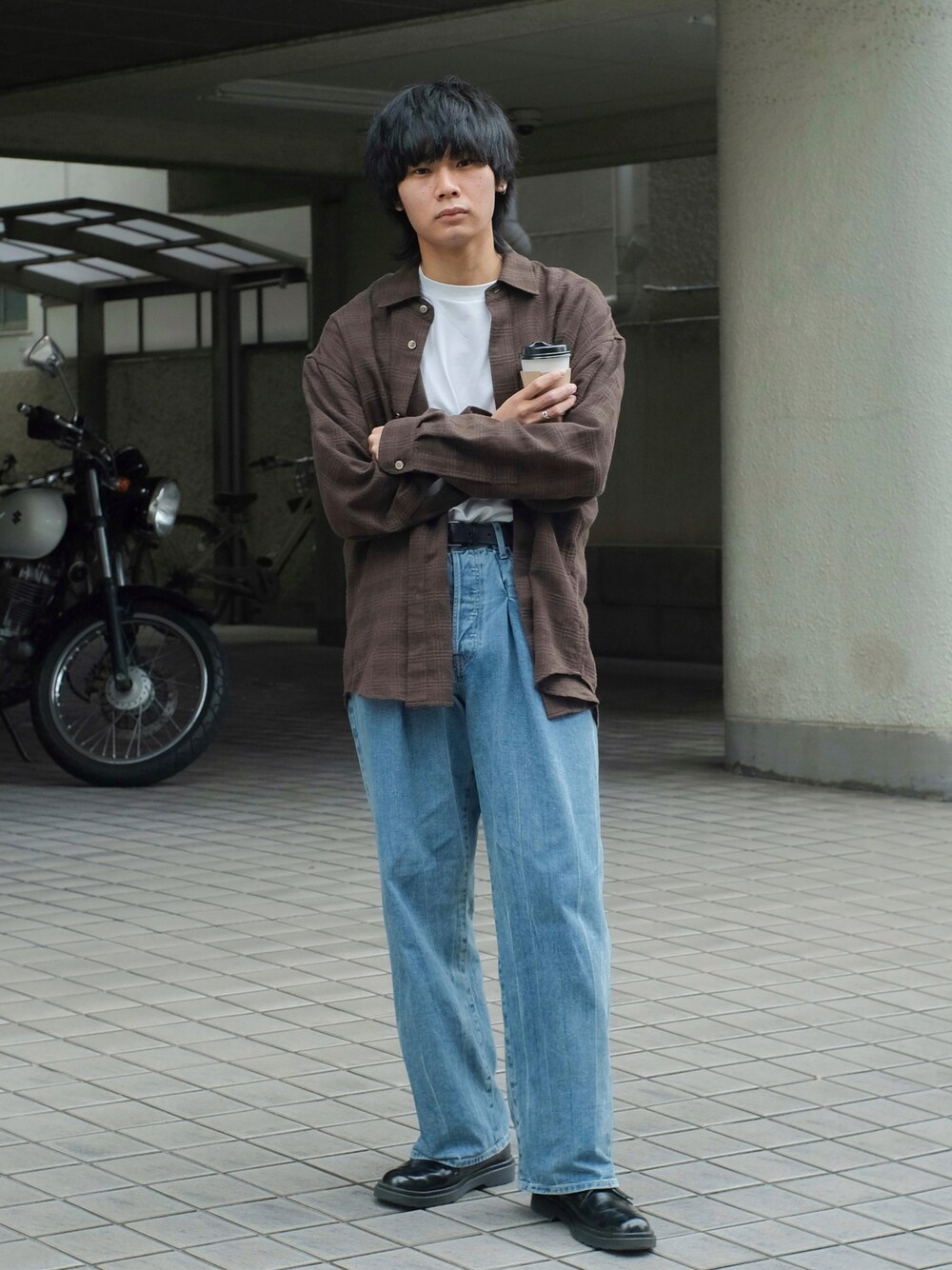 アースカラーコーデ❄️🍁 ブラウン×ブルー 個人的にお気に入りの配色です! シャツは、さり気ないチェックで 合わせやすい分、 デニムは少し癖のある柄が 足元に入ったもので バランスのよい個性味を…! WEAR:@comclothes Instagram:@comclothes 《着用サイズ》 トップス M インナー M ボトムス M シューズ 26.5