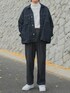 平莉川己夢(コム)のセットアップ「HEAVY OZ WIDE DENIM SET-UP」を使ったコーディネート