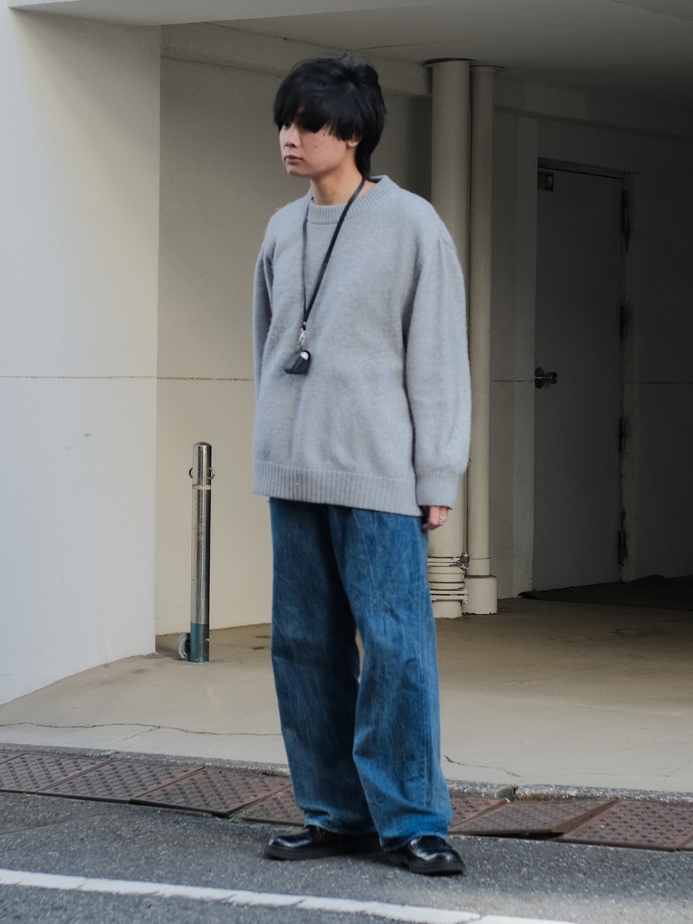ニット × デニムのシンプルコーデ 《着用サイズ》 トップス XL パンツ 3 アクセサリー F シューズ 26.5