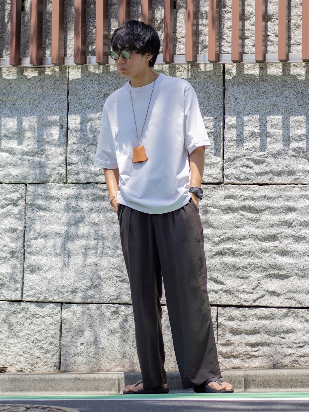平莉川己夢(コム)のTシャツ/カットソー「HARD TWISTED STITCH TEE」を使ったコーディネート