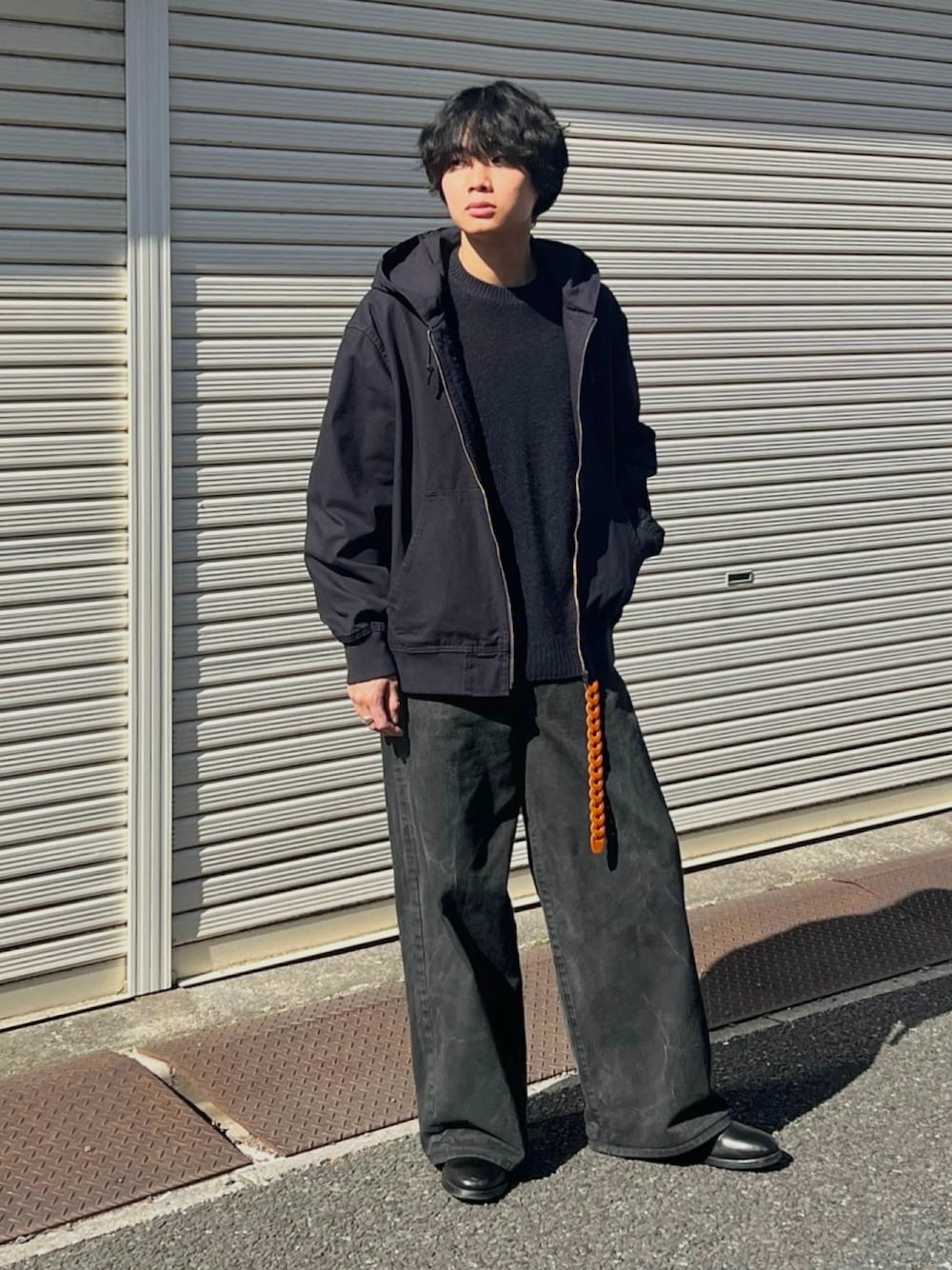 平莉川己夢(コム)のデニムパンツ「CRACK WASHED BAGGY DENIM PANTS」を使ったコーディネート