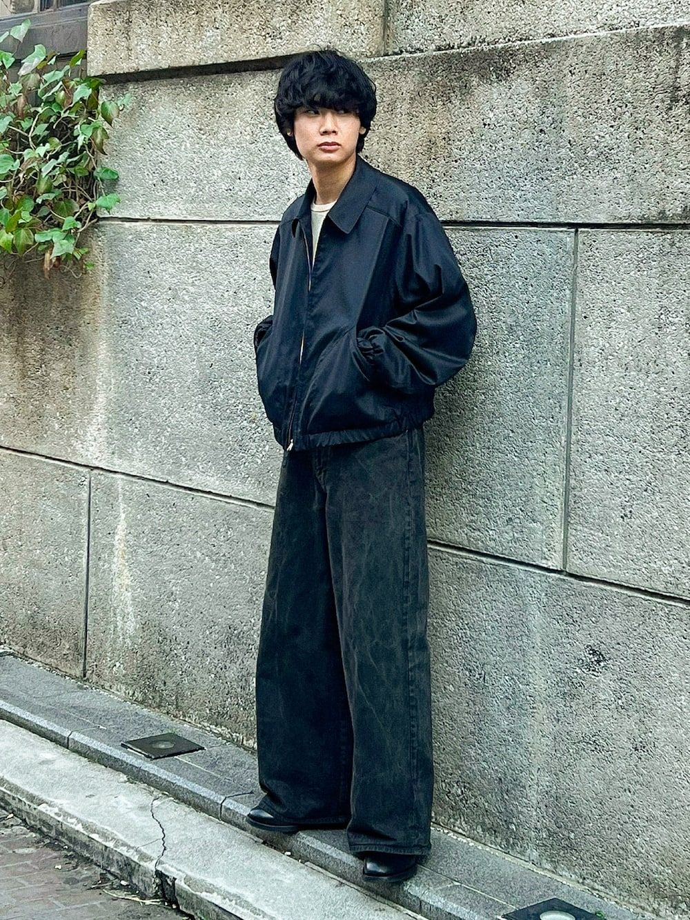 平莉川己夢(コム)のデニムパンツ「CRACK WASHED BAGGY DENIM PANTS」を使ったコーディネート