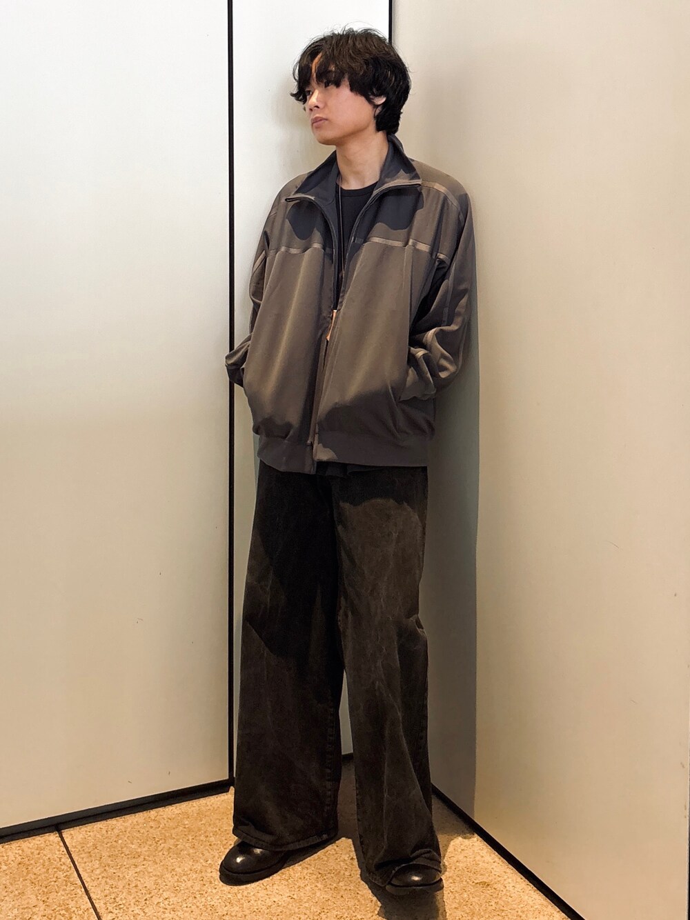 平莉川己夢(コム)のデニムパンツ「CRACK WASHED BAGGY DENIM PANTS」を使ったコーディネート