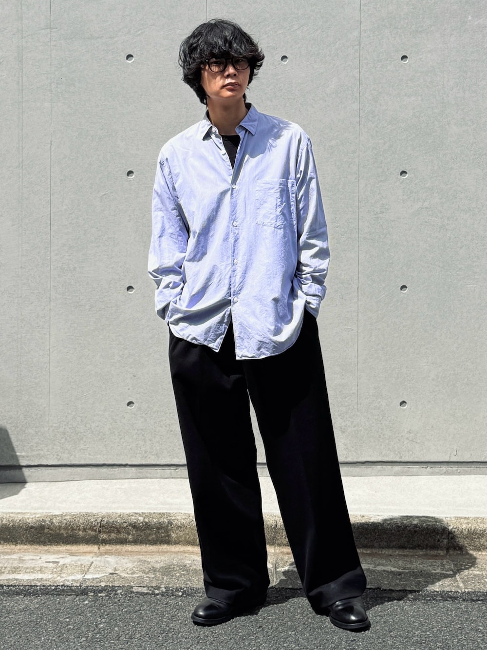 平莉川己夢(コム)のスラックス「SLIGHT FLARE DOUBLE CLOTH BAGGY SLACKS」を使ったコーディネート