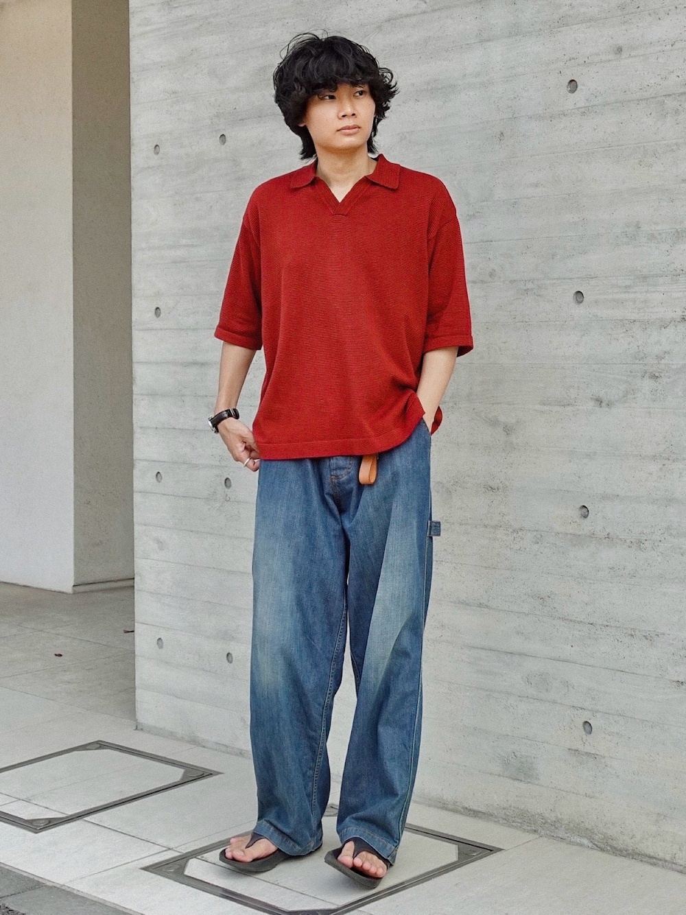 平莉川己夢(コム)のポロシャツ「PIN BORDER KNIT POLO」を使ったコーディネート