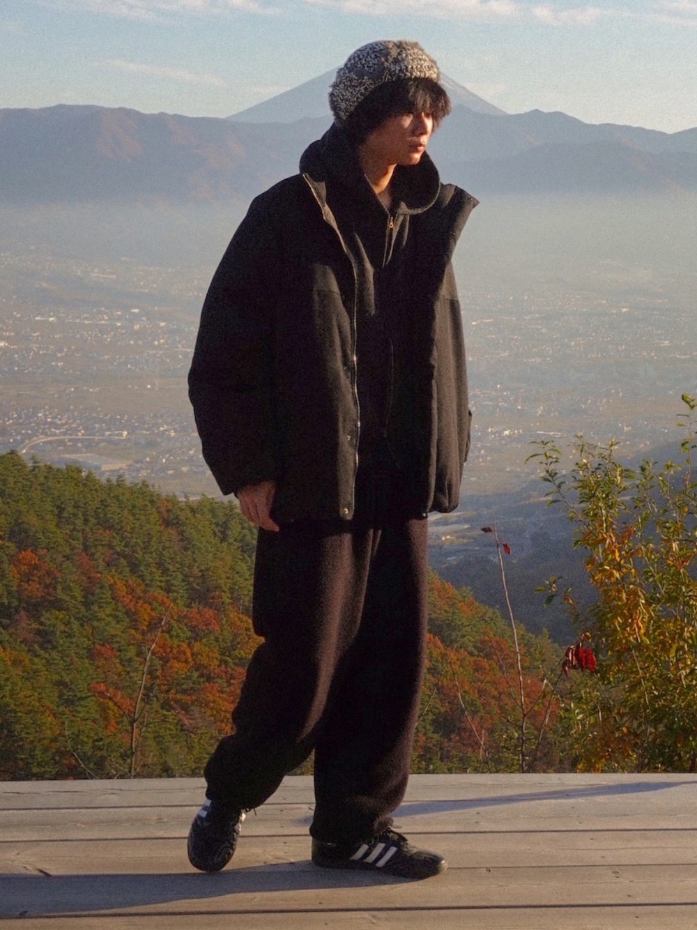 平莉川己夢(コム)のパーカー「WOOL CASHMERE ZIP HOODIE」を使ったコーディネート