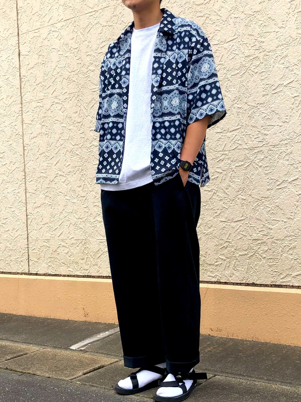 夏らしく柄シャツコーデ 吸水速乾なので汗かきな僕にもぴったりなアイテムです!
