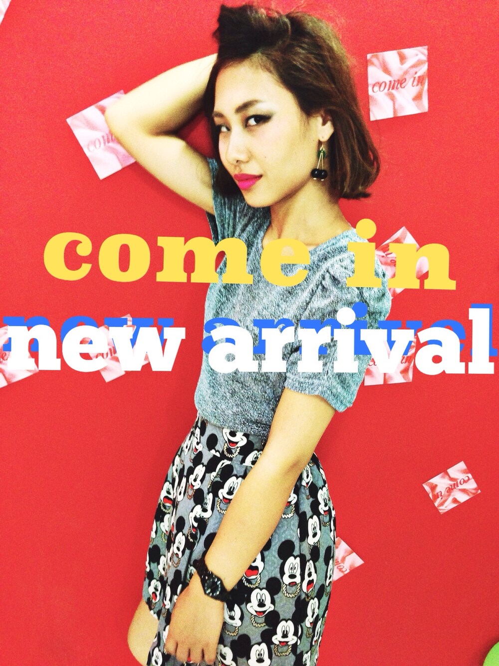 ミッキーのスカートがとってもインパクトのあるコーデ❤️ トップスのショルダーデザインとの 相性は抜群!!