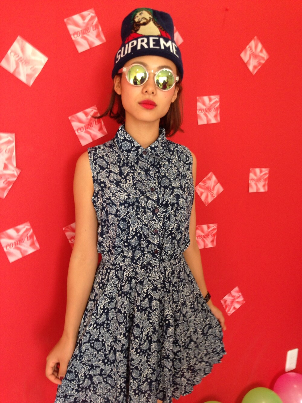 ペイズリー柄ワンピをあえて柄のニット帽と 合わせて奇抜めに✨ ネイビーのワントーンコーデが きいてます❤️❤️
