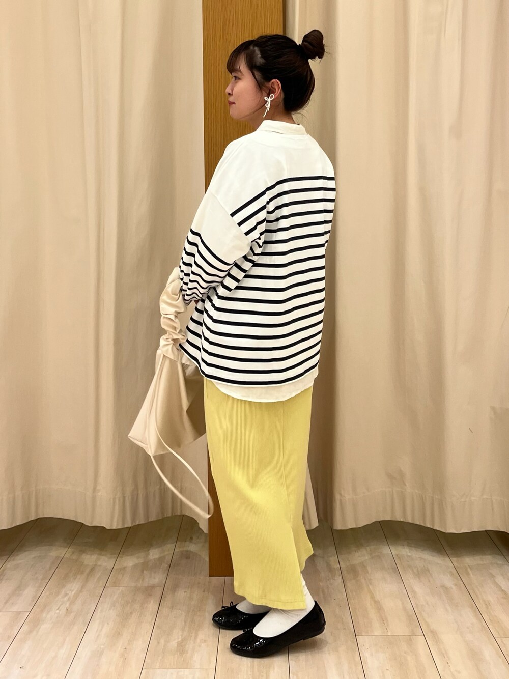カジュアルなシルエットのボーダーカットソーはタイトスカートとシャツのチラ見せで綺麗めな印象に🌻 ブラウスは麻素材で夏は羽織としても長く活躍しそうです💭⸒⸒