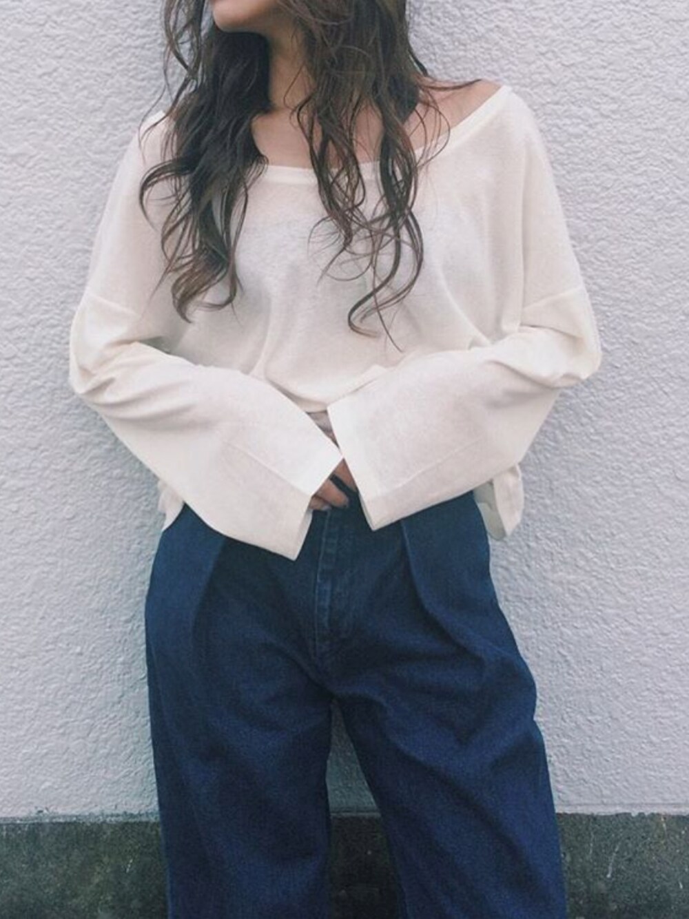 Miske(ミシュケ)のTシャツ/カットソー「SPIMA COTTON ロングTEE / OFF WHITE」を使ったコーディネート