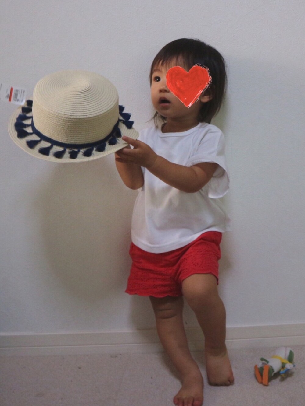 80センチを着よう週間‼️ 実は日曜から始めたので3日目です。笑 朝着せたTシャツがぱつんぱつんで、 もうすでにサイズオーバーしてました😭 児童館に行くのにブランシェスの白Tシャツに着替えて😅 赤のショートパンツは、フリマアプリで部屋着用に買ったやつなんだけど、 実はあんまり出番ないの😭 だって、部屋でズボン類履いてくれないんだもの😱 肌着+Tシャツ、もしくは肌着のみでうろちょろしてます😂 でもね、80センチの割にはお腹に余裕があるから、もしかしたら来年もいけるかも? 実際、今年70センチのショートパンツ履けてた🤣